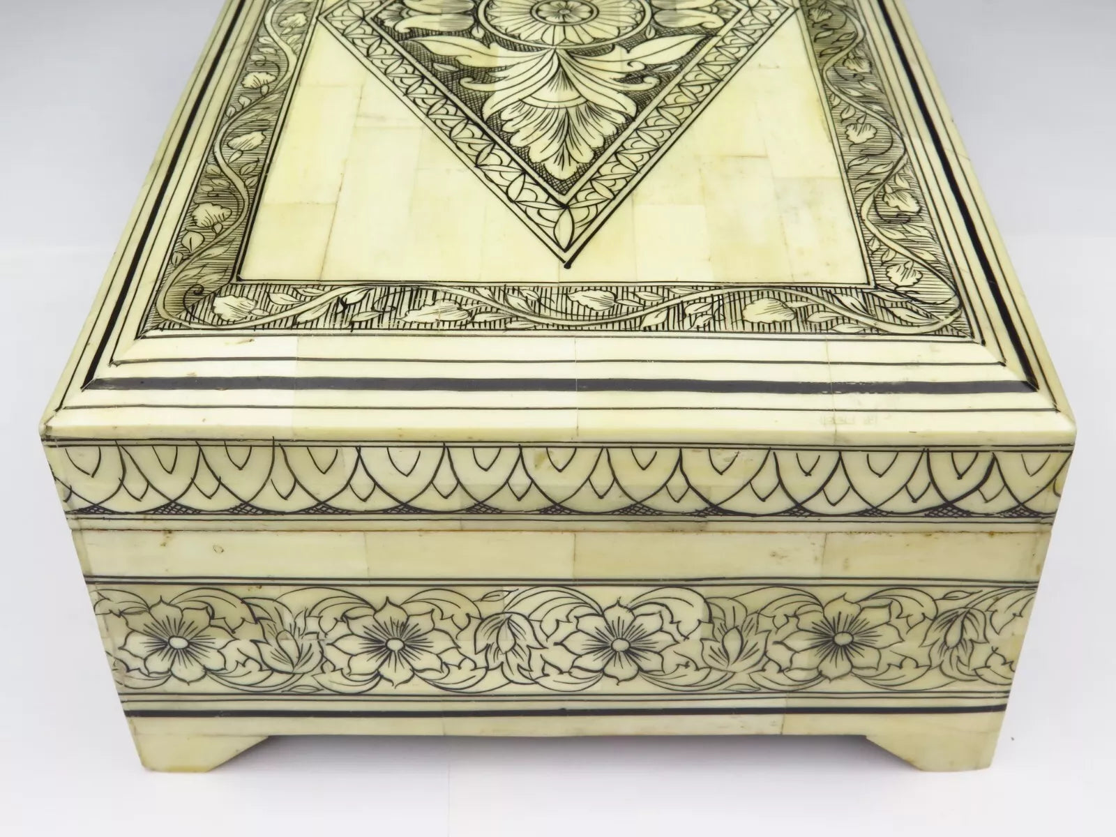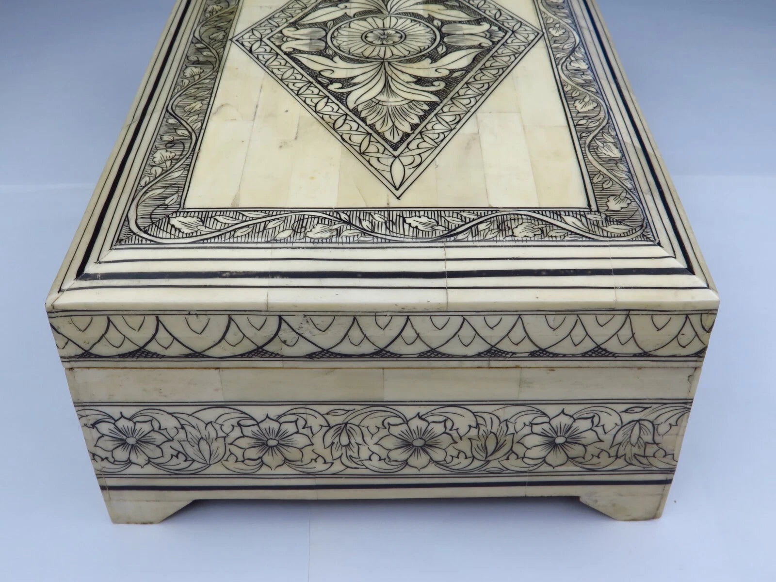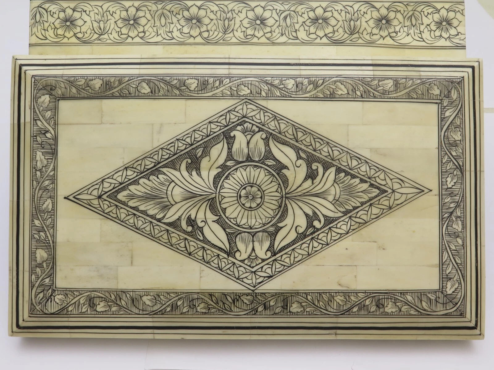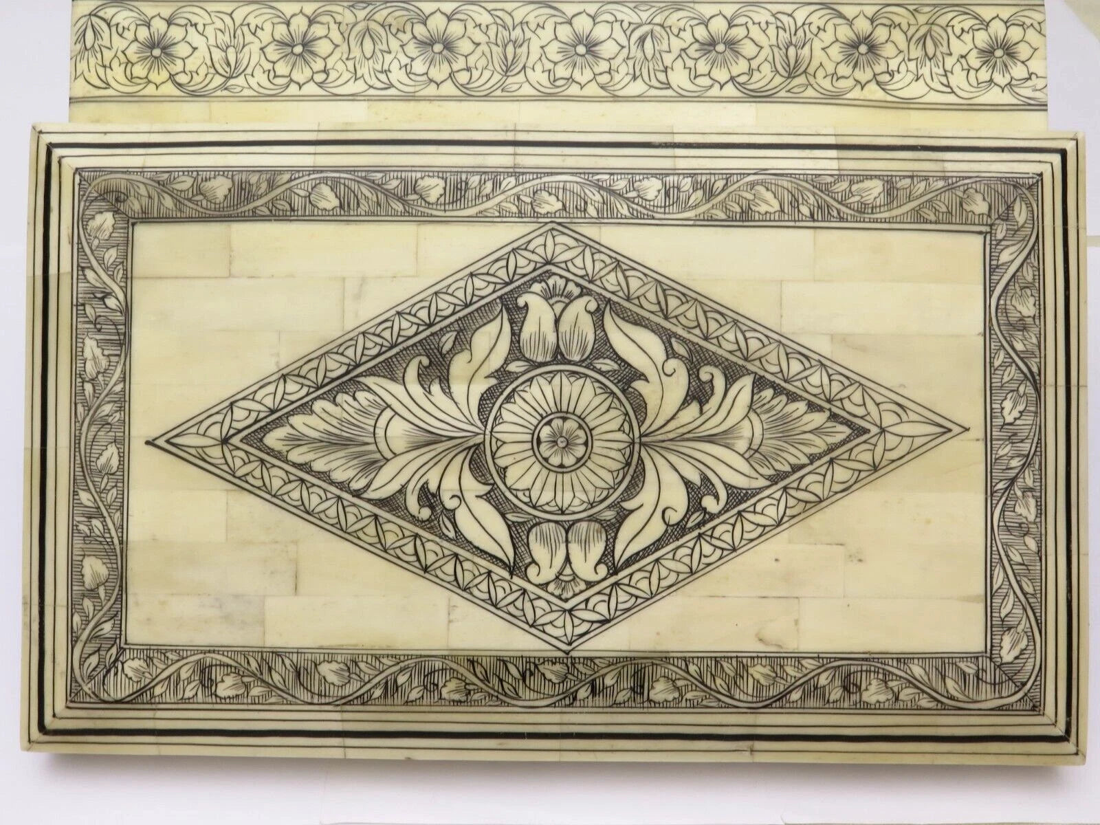 Antique Sandalwood Box REDUCED Very Expansive White Material c1860 19th C' (20)
